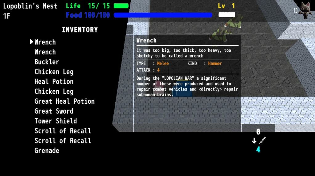 rogue-like hack and slash with Auto-generated dungeon and turnbased grid moving. "Rogue-like with Ningen, tanks and cats"!