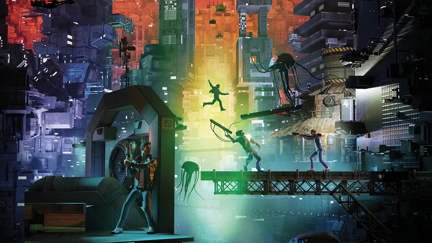 • Immerse yourself in a vibrant sci-fi/cyberpunk universe and visit multiple environments (New Tokyo, New Washington, the Jungle...)