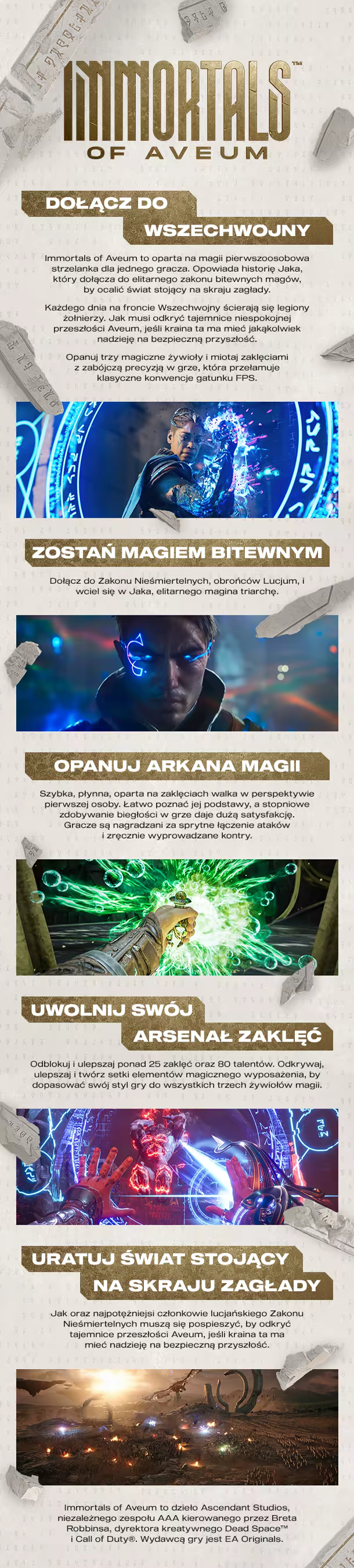 Kup Edycję Deluxe Immortals of Aveum™, a otrzymasz pakiet Pradawnych Reliktów Aveum, w skład którego wchodzą: