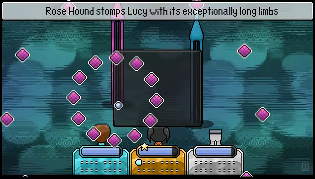 Engage with a wide variety of unique and unusual enemies in turn based combat mixed with bullet hell style dodge mechanics.