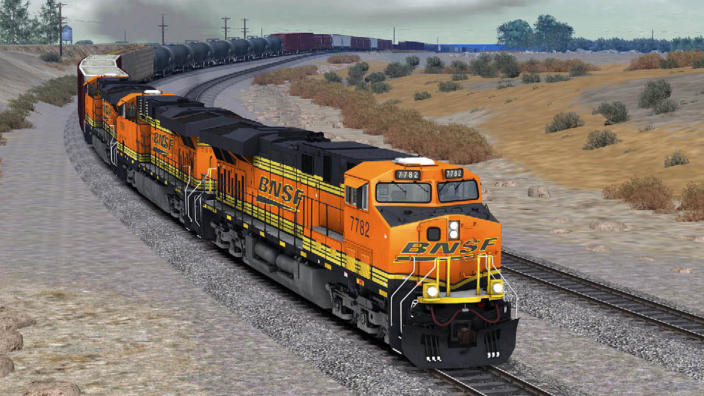 • Handle a priority run of BNSF’s hot transcontinental double-stack intermodal train Z-WSPSTO calling upon the potency of high-horsepower General Electric locomotives.