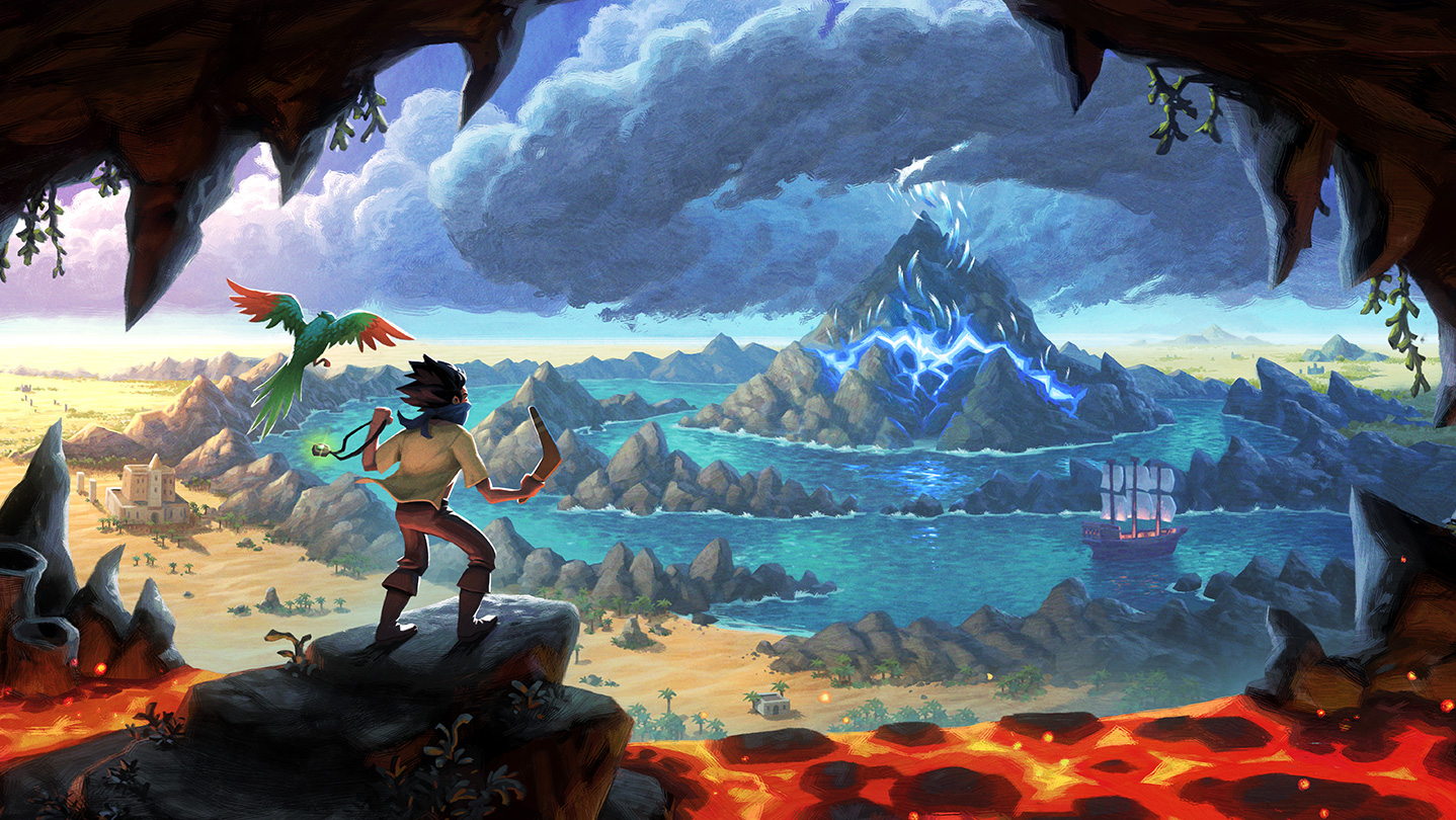 Master fluid, one-vs-many combat with boomerangs, grappling hooks, telekinetic tornadoes, and upgradeable powers. Face off against 25 unique enemies and 7 formidable bosses on a globe-trotting quest to stop the Pirate King.