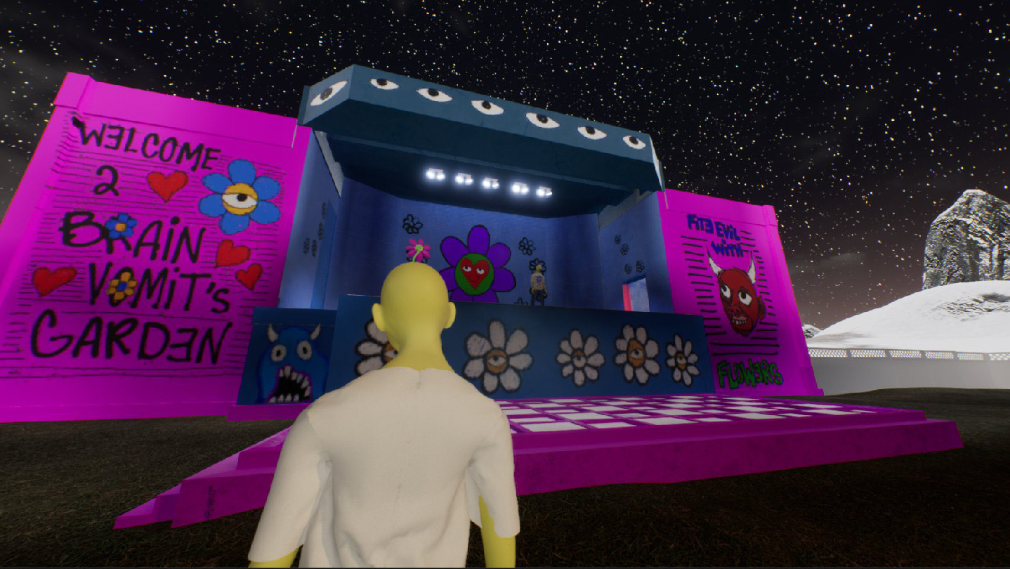 BRAiN VOMiTS GARDEN is a single/multiplayer experience developed by a small group of independent artists. Our objective is to connect as many friends or strangers online to work together and discover the garden: A realistic, stylized land powered by Unreal Engine 5.