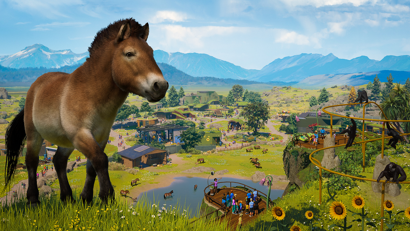 "Dit is het Planet Zoo: Natuurbehoudpakket! Kom meer te weten over de belangrijke rol van dierentuinen bij het helpen van de planeet en breid jouw dierentuin uit met vijf bedreigde diersoorten: het przewalskipaard, de amoerpanter, de algazel, de siamang en de axolotl.