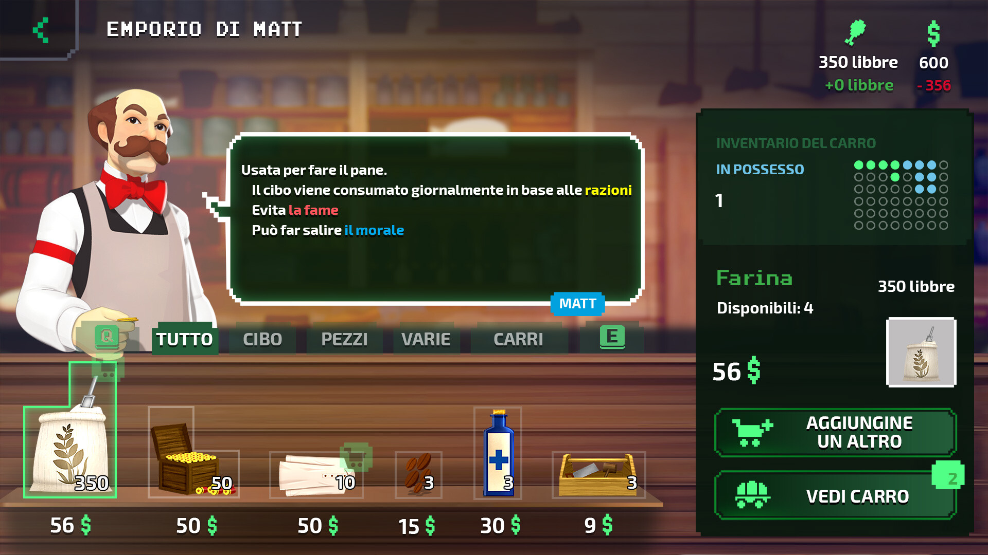 • Prenditi cura del tuo gruppo, del carro e dei buoi, se vuoi sopravvivere sulla pista.