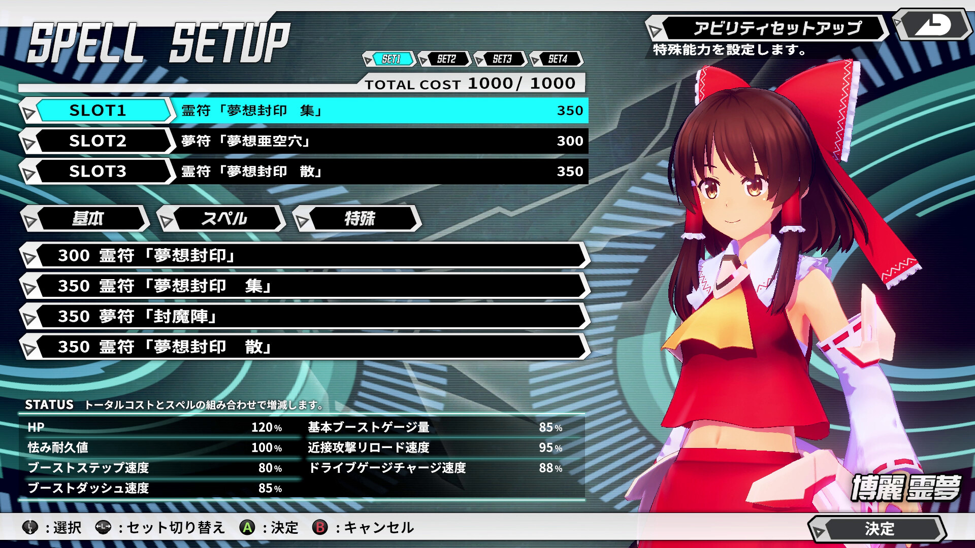 • アクセルドライブ:一時的にパワーアップ(移動速度、モーション速度、各攻撃力上昇)