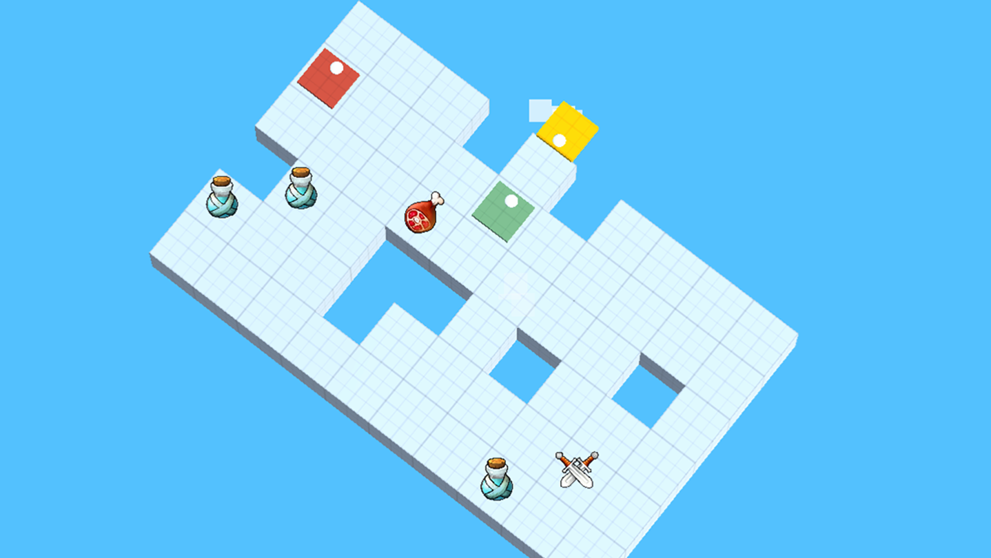 Every turn player will receive energy to walk and at the end of the turn, If your head points at another player your character will attack them.