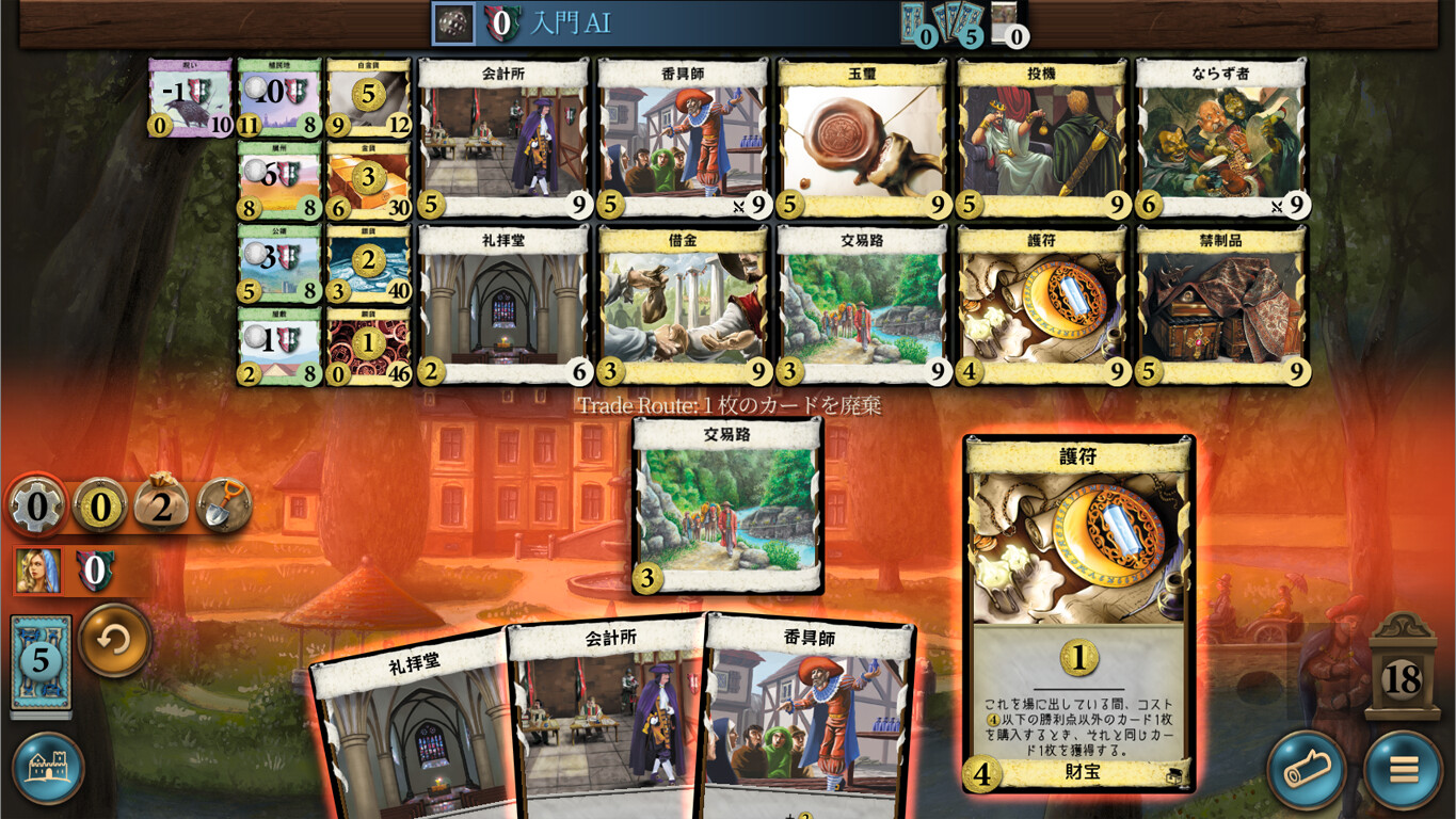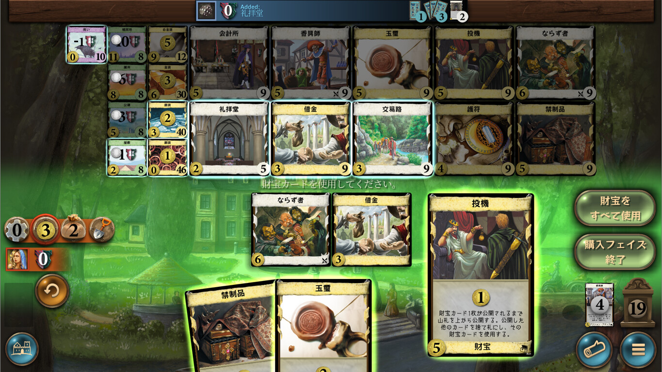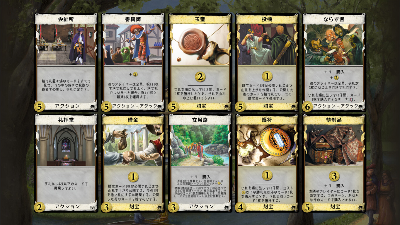 繁栄セットの最初のリリース時(第一版)に含まれていた、借金、交易路、護符、会計所、玉璽、禁制品、香具師、投機、ならず者で遊ぼう。