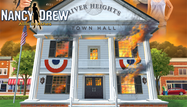 “Nancy Drew: Alibi in Ashes starts with Nancy Drew following a mysterious note that leads her into the Town Hall of her home town River Heights. The public building erupts in flames while Nancy is inside. As Nancy Drew, players hear the explosion and witness firsthand the smoke filling up the room…”