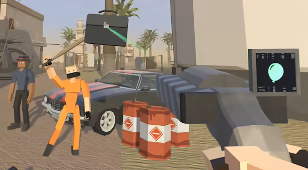 As a player, you share the same damage system as the active, physics-based ragdolls in the game. This shared damage system makes every encounter thrilling, as you balance between creating chaos and protecting yourself.