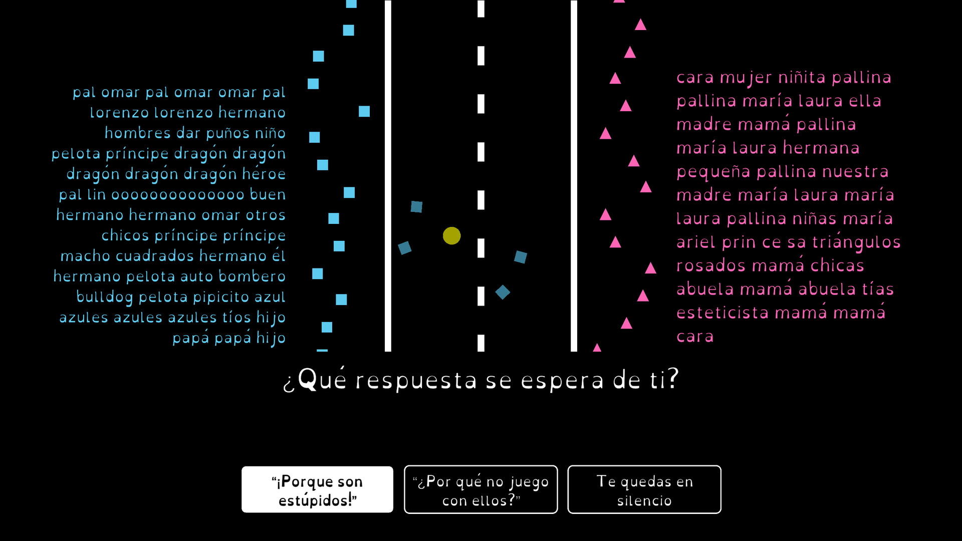 te recomendamos que vivas las dos historias: al combinar las experiencias personales y los testimonios de quienes nos han apoyado, hemos creado dos caminos muy diferentes. las vidas de las personas no binarias son tan variadas y complejas como las de cualquier otra persona. por eso el juego no pretende contar la historia de todos, sino sólo un pequeño vistazo a un mundo complejo.