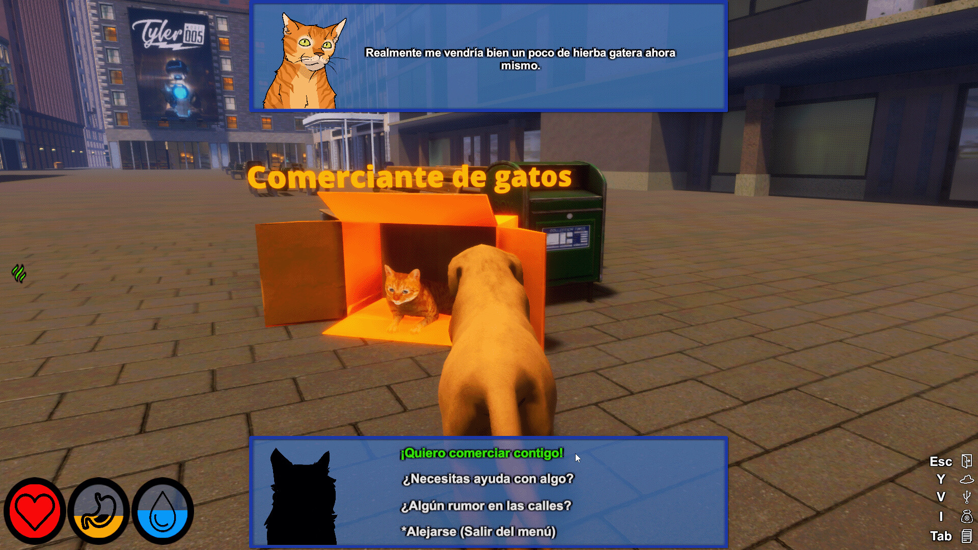 ¿Necesitas un bocadillo rápido? ¿Qué tal un arma o una armadura? Este gato lo tiene todo, pero es difícil de negociar. No temas. Siempre se puede negociar. Vende objetos especiales, regatea y haz favores para conseguir los precios que necesites.