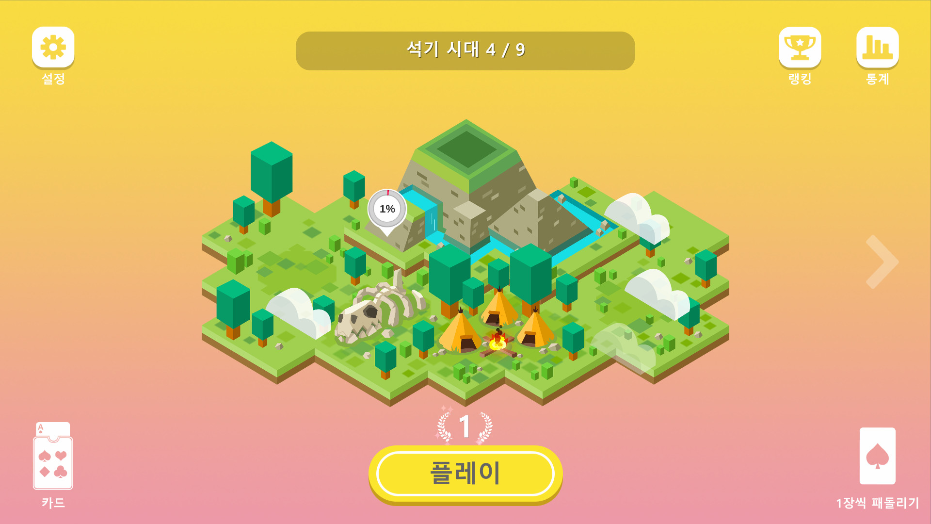 이제 솔리테어 카드 게임을 즐기면서 문명을 건설해 보세요.