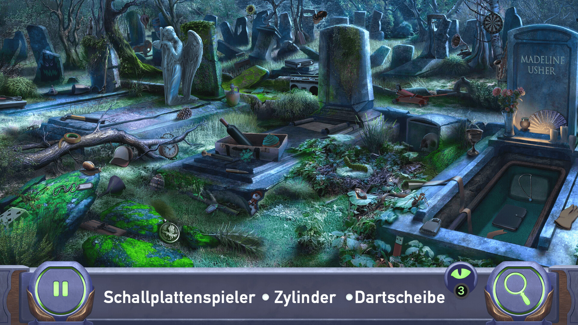 Entdecke die Geheimnisse eines mysteriösen Anwesens, inspiriert von Der Untergang des Hauses Usher. Schlüpfe in die Rolle eines Detektivs in einem Hidden-Object-Abenteuer voller Rätsel und Überraschungen!