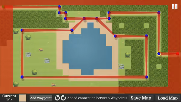 Choose from all the tiles used in the game and plan out the path your enemies will take.