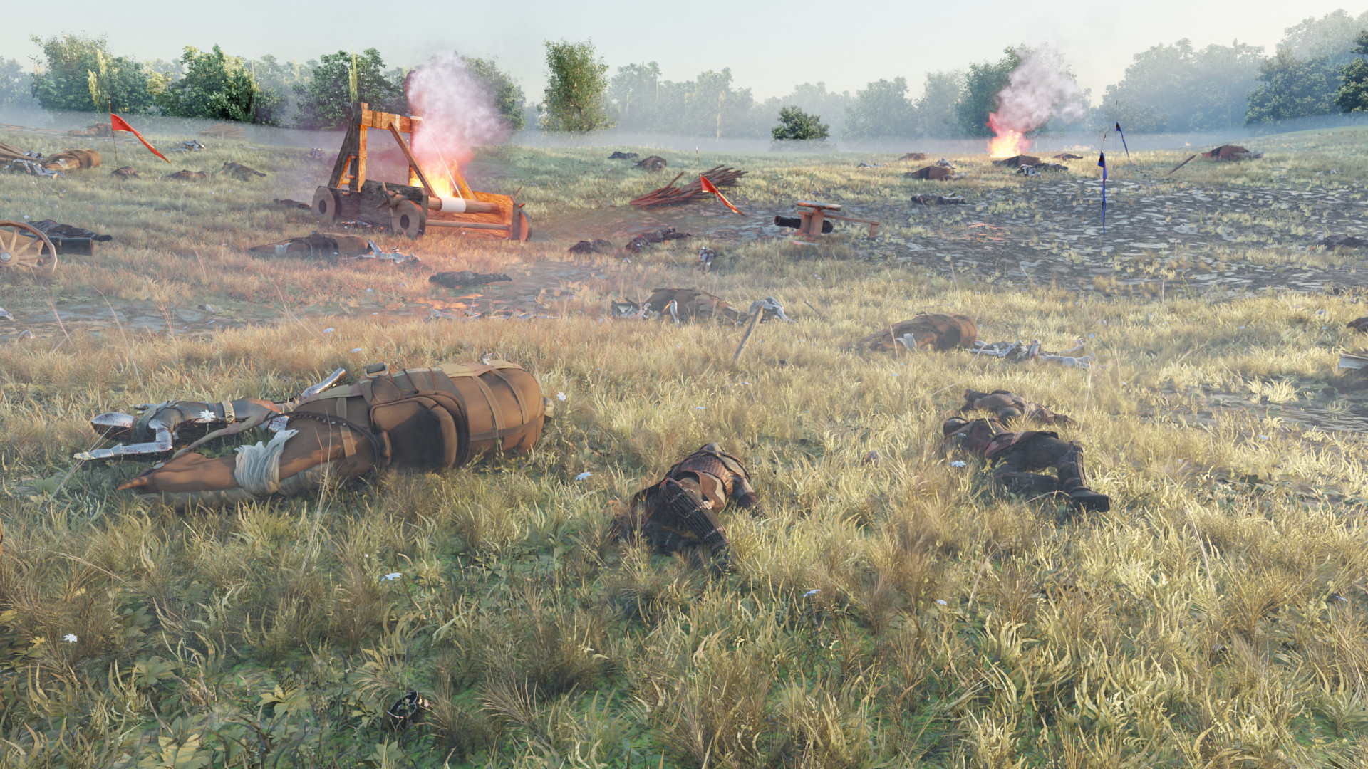As the dust of battle settles, you arrive to aid the wounded soldiers of Danburg. It seems no danger lurks on the horizon. Weapons are scattered everywhere—swords, armor, helmets… Take advantage of this great opportunity! Decide who to help and who to rob! Observe your surroundings, collect weapons, gather armor, sort them and pick the best ones. Once you’ve gathered enough gear, head to the workshop. Just remember—your cart can’t carry everything