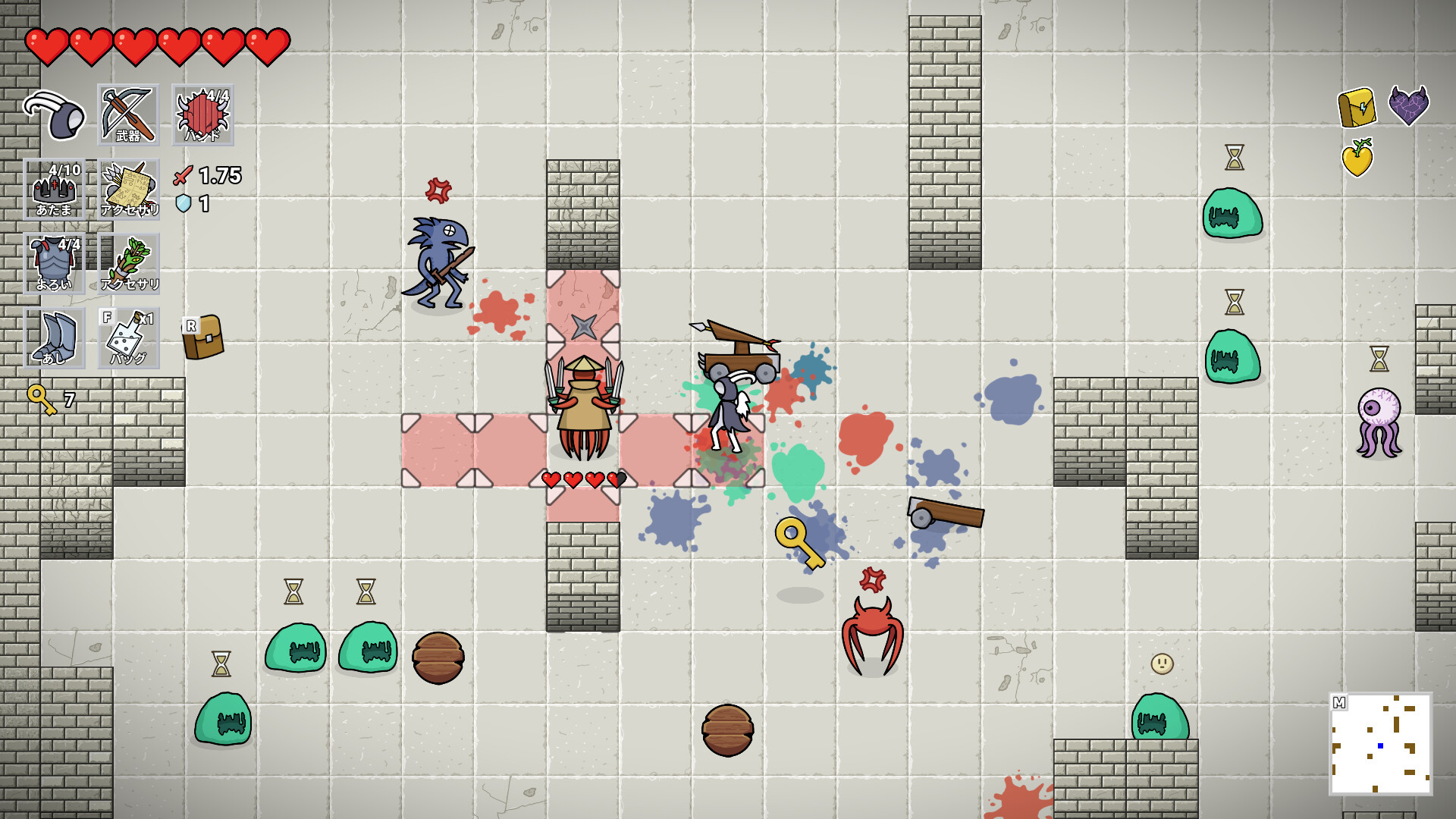Turn-based roguelike with minimalistic, fast-paced combat that focuses on learning enemy patterns and making powerful synergies with your items.