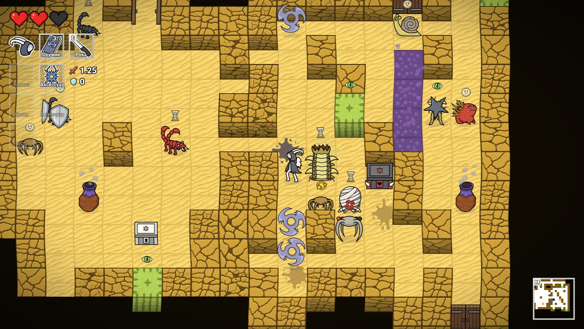 Каждый враг имеет предсказуемое поведение, которое ощущается как микро-головоломка. Изучай поведение врагов, и ты всегда сможешь убивать их с любым оружием и без получения урона.