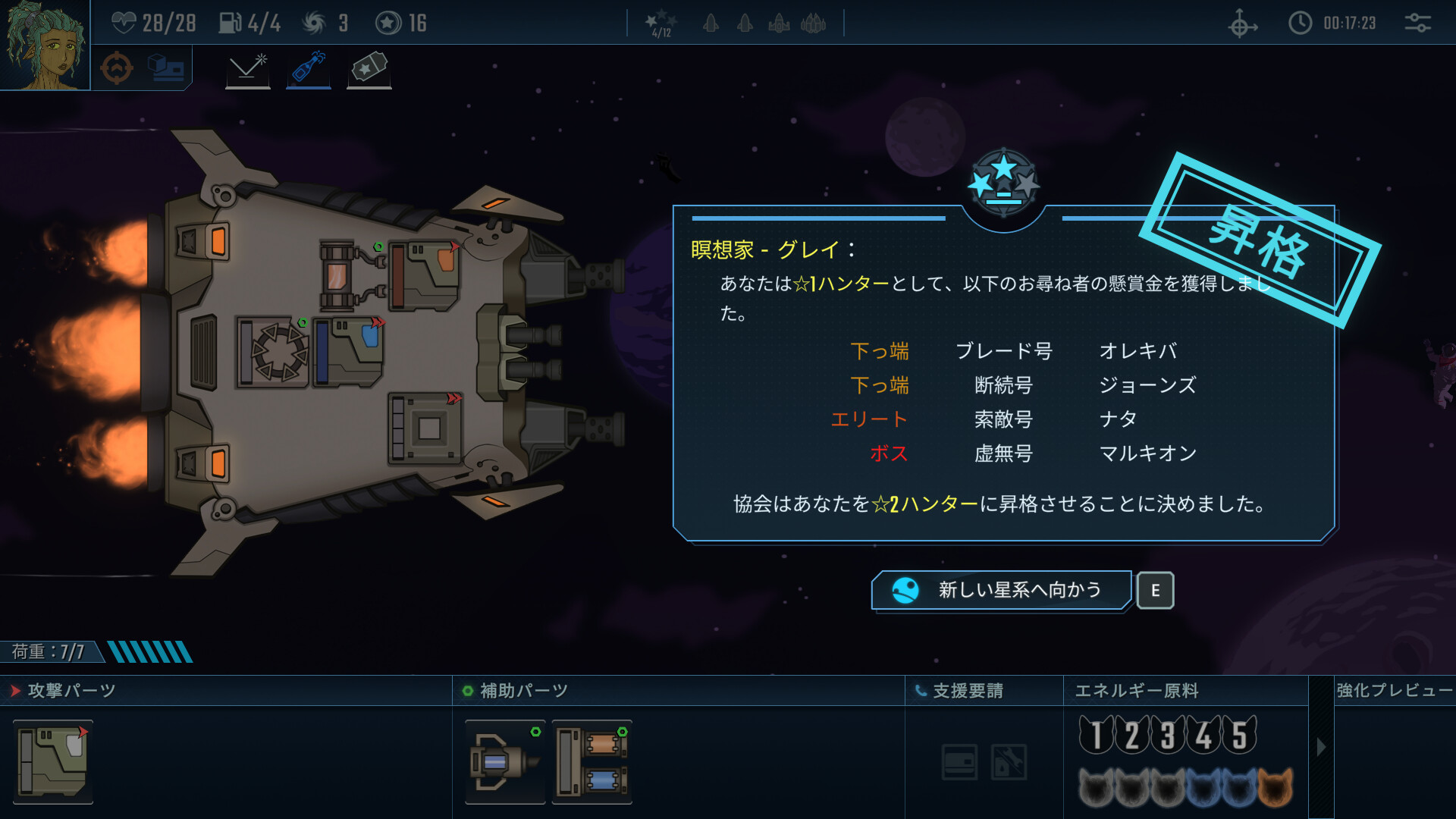 『ローンスター』は、戦略的な宇宙船デッキ構築型ローグライクゲームです。あなたは賞金ハンターとなり、宇宙に巣くう犯罪者を捕まえることになります。バトルに勝利して報酬と休暇を手にしましょう。宝物やパーツを見つけて宇宙船をカスタマイズし、悪党を倒して宇宙の伝説となりましょう!