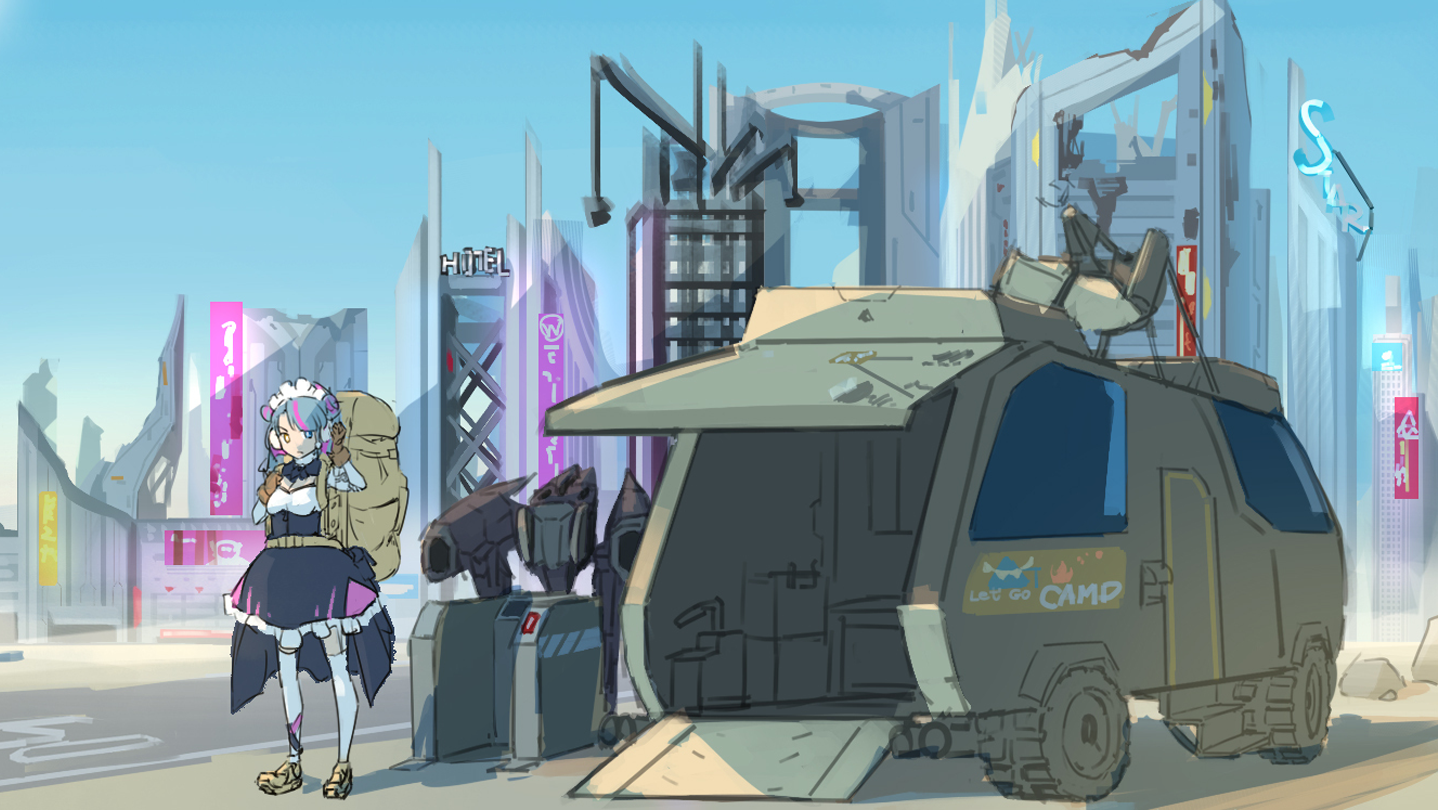 Maiden Gear : Dynamic Visual Novel crossed with Strategic Roguelike Shooter! Currently in development, our beautiful and deadly Robot Maids are good at making you the perfect breakfast tea and ending lives before they know it.
