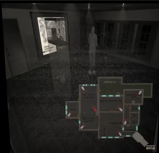 The protagonist gets a job in a museum and on the very first night realises that now his life won't be the same. The museum director calls the hero and tells him that his main goal is not to protect the museum from thefts at all, but to keep an eye on the statue! The director declares that every night the statue of Stalin tries to leave the museum, and that is exactly what you must not allow. You have cameras, a radio, a torch and a table to hide under.