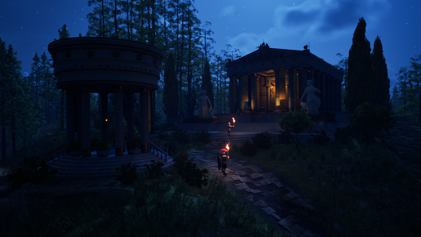 Venture across the ruins and wilds, just beyond the gates of the Underworld. With heightened movement abilities, traverse and endure the natural challenges of coastal cliffs, foggy woods, dark caves, and blistering sands to unlock treasure and power amidst reclaimed temples.