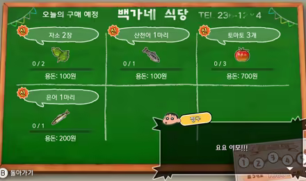 백가네 식당이나 마을 카레 가게, 슈퍼에서는 언제나 식재료를 모집 중. 모두의 심부름으로 게시판에 적힌 식재료를 모으면 용돈을 받을 수 있습니다.