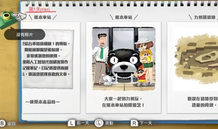 自然景觀豐富的阿素有許多蟲子,其中還有春日部沒有的罕見昆蟲。用捕蟲網對準目標,奮力揮網吧。抓到的昆蟲會記錄在「生物圖鑑」哦!