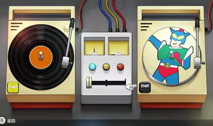 到咖啡館兼酒吧的「舞動次郎」跟店裡的大哥哥增進感情後,就可以遊玩DJ遊戲哦。歌曲是遊戲中的背景音樂!混音完就在店裡放來聽聽吧。