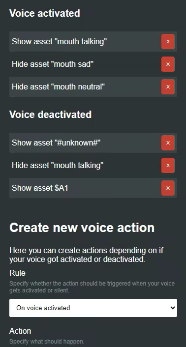 You can create voice actions, meaning things that should happen when you start talking or when you become silent again.