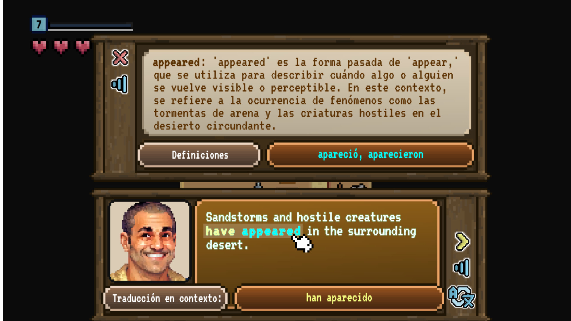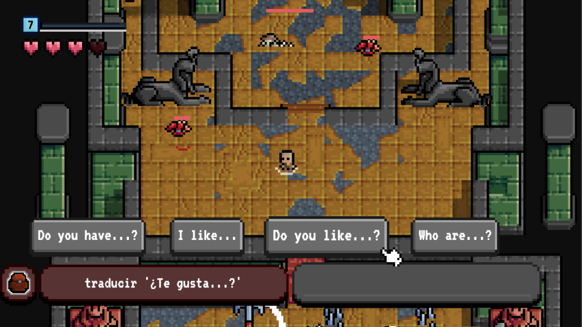 Mientras viajas por nuevas áreas, repasarás el vocabulario combatiendo criaturas hostiles...