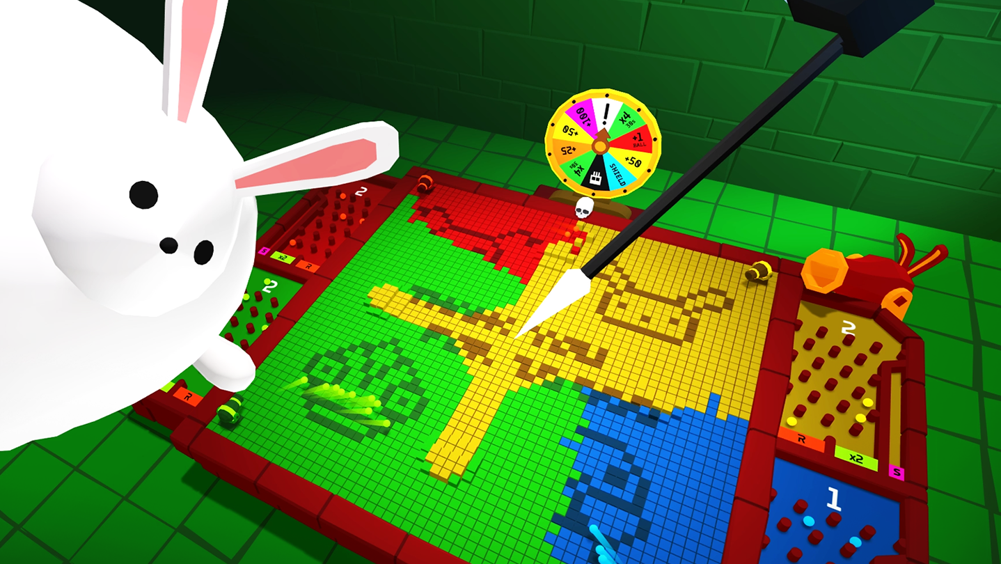 The pachinko-style mechanism on the side of each player determines how many bullets to shoot.