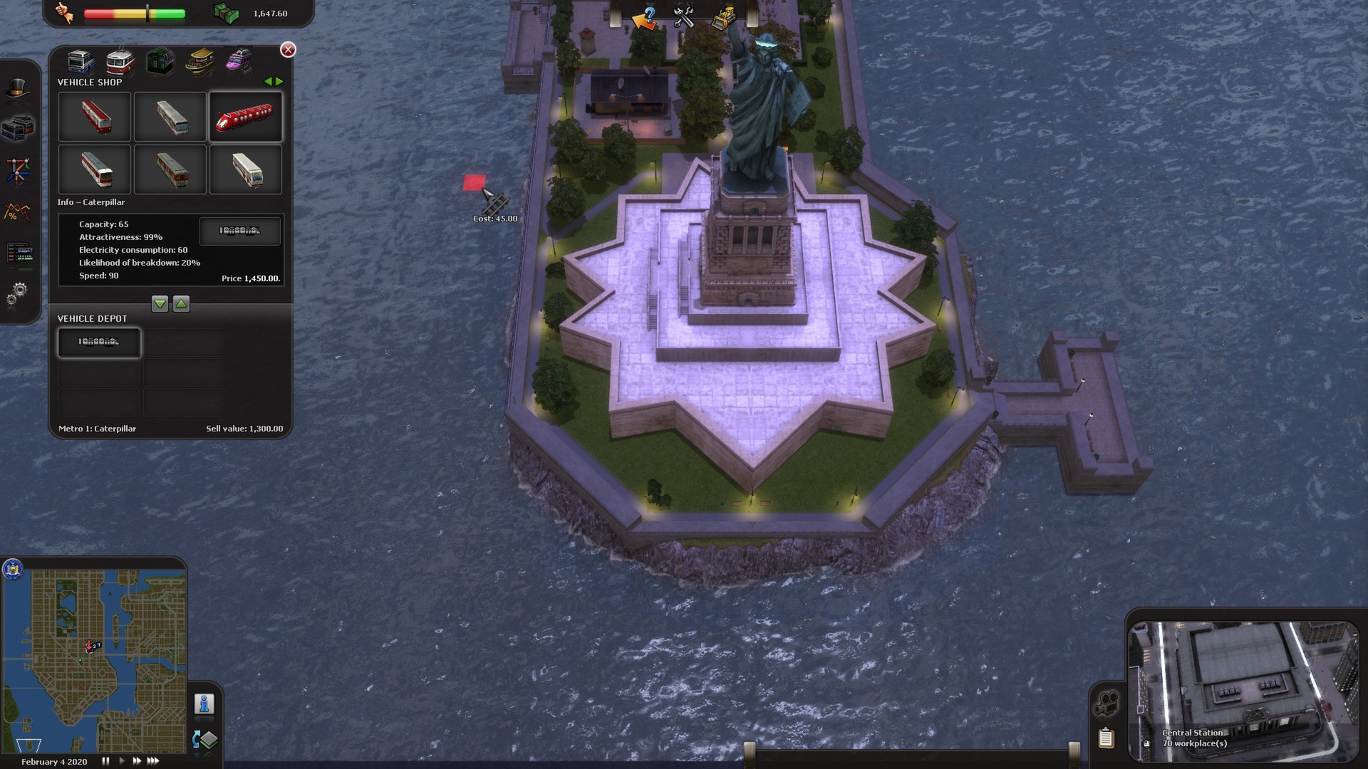 One of each of vehicle type, but with a twist! Instead of helicopter take a pleasant ride in a hot air balloon, or perhaps a tram that's been built like a boat to sail the city streets. These innovative vehicles will add a whole new level to the game and keep your company afloat with their high attractiveness.