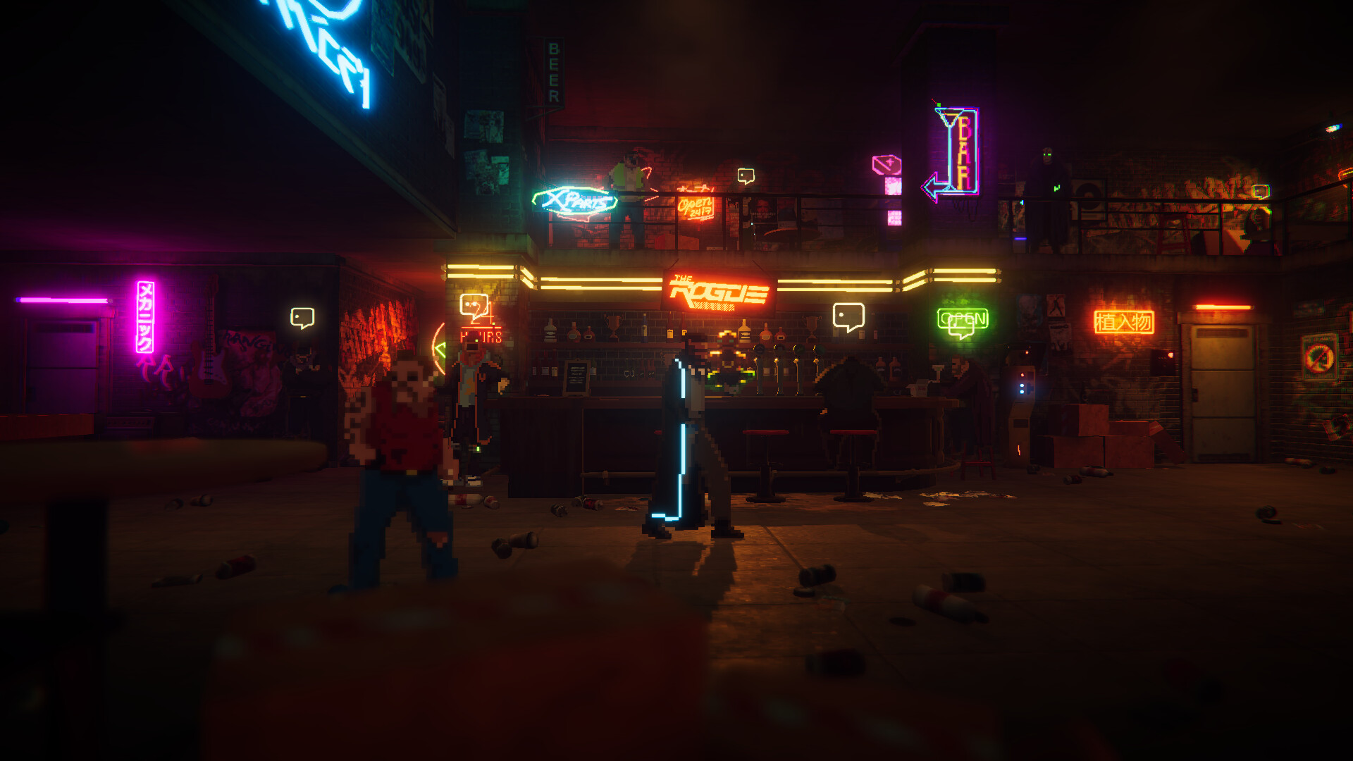 Neon Blood's aesthetics feature a unique blend of 2D and 3D combining the retro style of hand-drawn and animated pixel art with highly detailed 3D environments, all with meticulous lighting that will make walking through the streets of the great Viridis a visual spectacle.