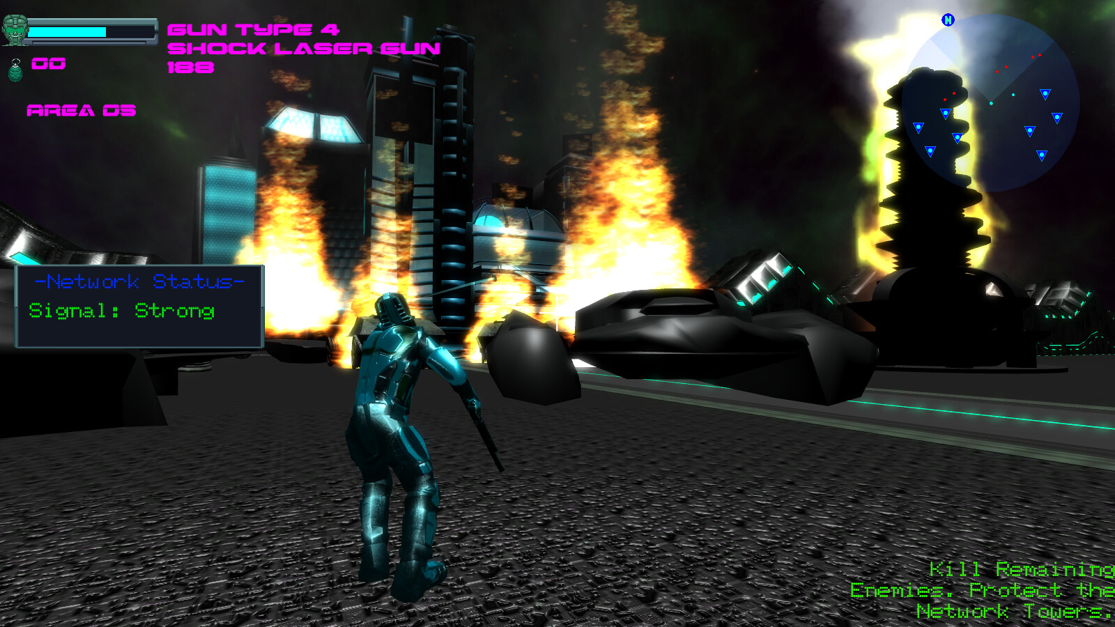 * Laser Gun - Rapid fire laser gun useful against other enemy soldiers.