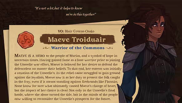 MAEVE TROIDUAIR: An Unseelie folk hero endowed with incredible power. Voiced by Blair Greene-Osako.
