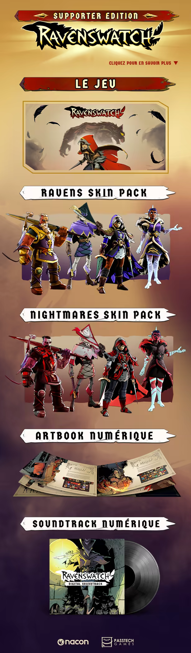 Ravenswatch est un action roguelike en vue du dessus où vous incarnez des héros de contes et légendes aux prises avec des hordes cauchemardesques dans des combats nerveux. Fort du succès de Curse of the Dead Gods©, le studio Passtech Games revient avec une formule améliorée et la promesse d'une expérience addictive et rejouable à l’infini, en solo et en coopération jusqu'à 4 joueurs.