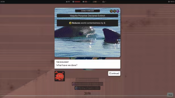 IMPACT THE WORLD: Half-Earth Socialism features a simple model of the world: the impact of your decisions are simulated using the HECTOR climate model and a model of planetary production and demand. See how the world changes according to your actions--perhaps new culinary trends around eating invasive species, or the emergence of eco-terrorists if your plans fail to improve planetary health and human well-being.