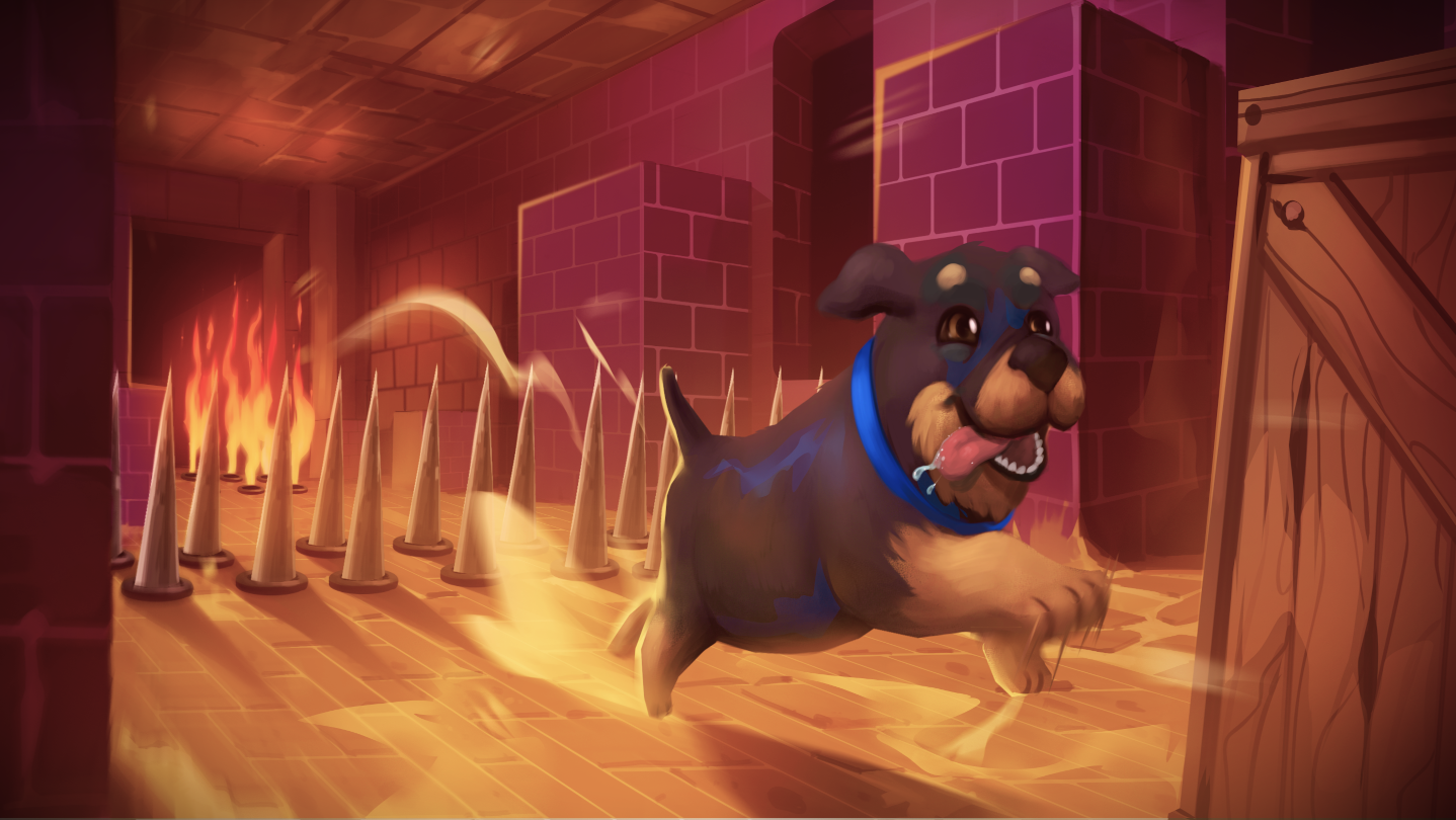 Sokorun it's a minimalist game with mechanics of sokoban. With a dungeon theme, where a rottweiler puppy it's trapped and need to scape. Be careful with the traps around, any touch will reset the level.
