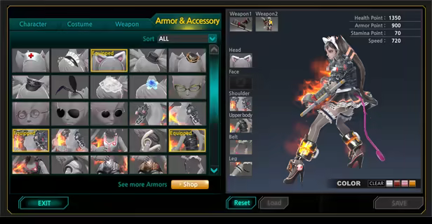 Gear up to prepare yourself for battle. By gearing up, you can customize the look of your character as well as add stat boosts. There are over 500 customizations available, try them all!