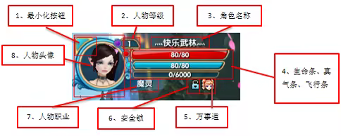 魔条:图形显示角色真气/真气最大值,点击MP按钮在角色人物头顶会显示魔法条。