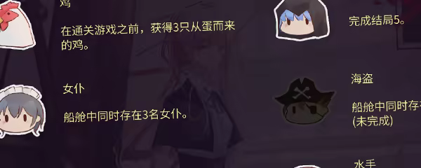 当然了,多结局和成就功能也是完备的,你在航行中的一些选择会影响最后的结局。