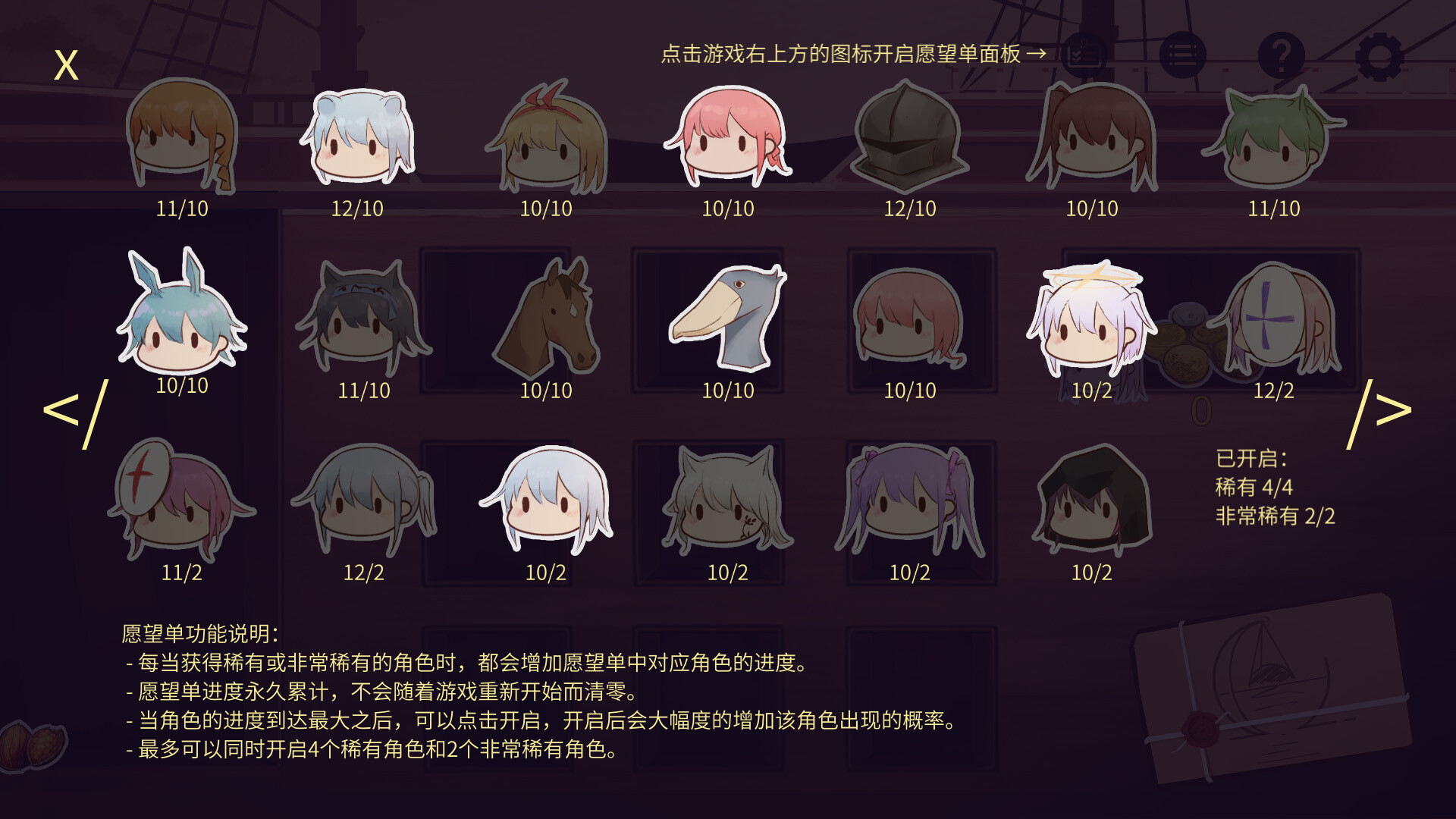 然后你需要选择角色,角色受各种因素影响随机出现,包括目标地点本身,和帮助你获得稀有角色的角色等等,角色决定了船能运送多少货物。