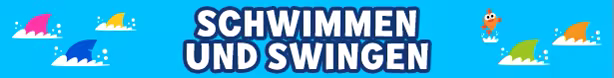 • SCHWIMMEN, SINGEN, SWINGEN – Singen und Tanzen zu Hai-teren Liedern wie Baby-Shark, dü dü dü dü dü dü.