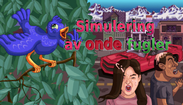 Simulering av onde fugler er et tegneseriespill der du spiller som en fugl som bæsjer på folk og biler. Hovedspillerens mål er å holde seg i live og bæsje på så mange mennesker som mulig. Hvis du dør i dette spillet, havner du i helvete!