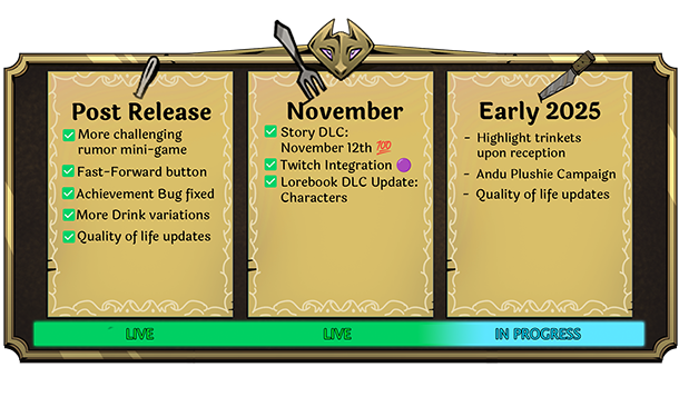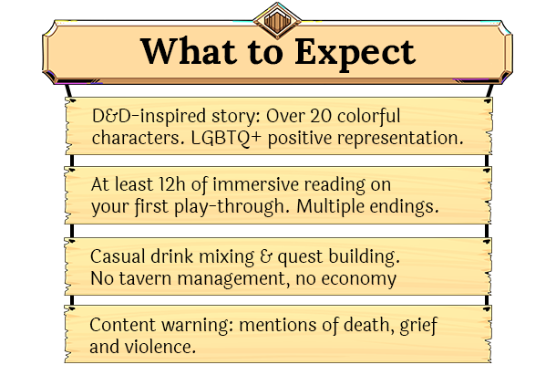 A cozy visual novel about running a tavern in a D&D-inspired fantasy! Gather rumors, serve magical drinks, and meet adventurers on a life-changing quest.