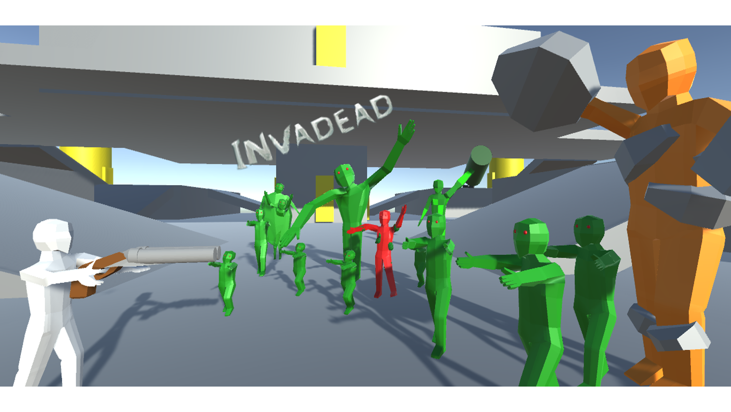 Invadead is a run n' gun first person shooter where you fight off hordes of zombies. You must always stay quick on your feet, as ammo on the powerfull guns quickly depletes and your health and stamina are mainly refreshed by pickpups found around the map. Remember to always use each gun for it's purpose, and don't just stand around shooting everything with a pistol. Invadead features an arcade mode, where your goal is to survive through the most levels in one go to build a streak, as you and zombies gain in new abilities, but also it features a more streamlined campaign. The game is PC exclusive, and better played on a qwerty keyboard.