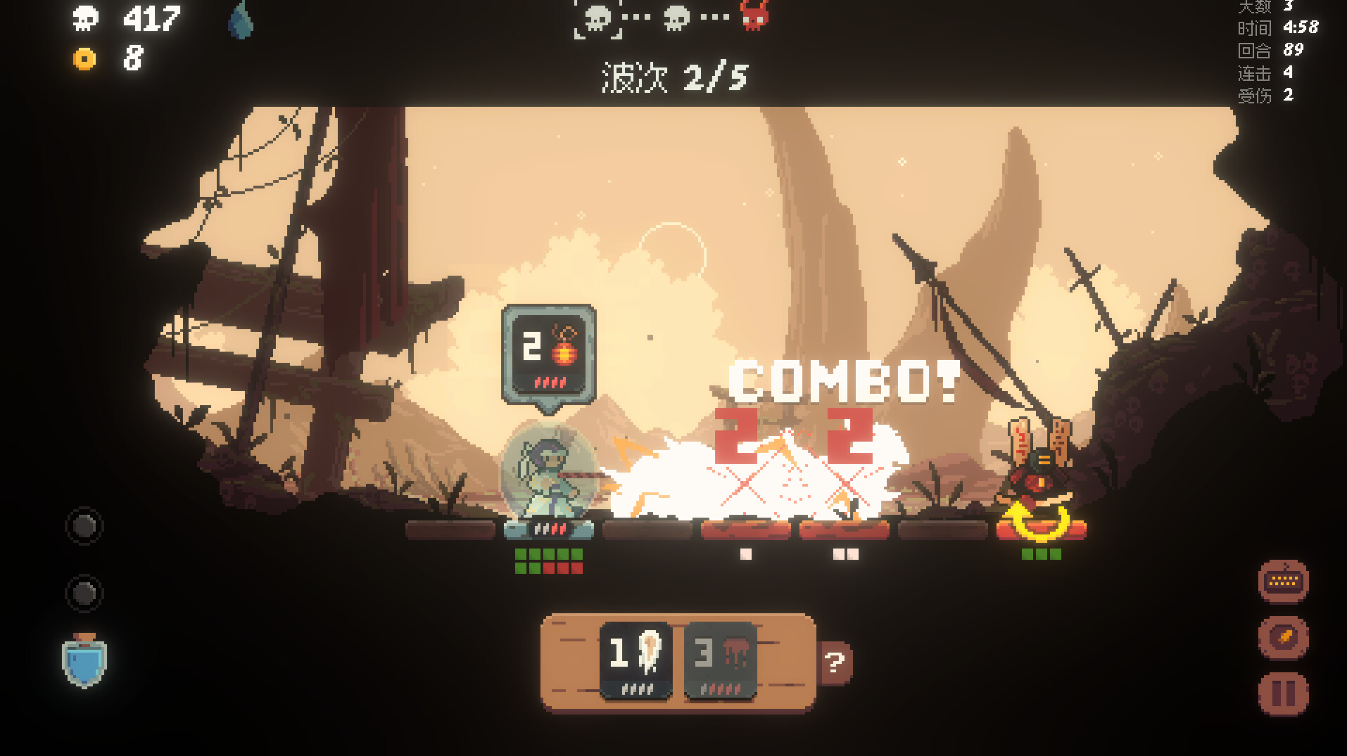 在这个基于回合制的战斗游戏中,你将会与将军的军队作战,并在游戏中体验到肉鸽和卡组构筑的元素!