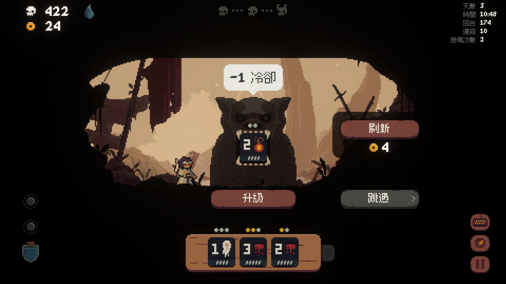 在這個基於回合製的戰鬥遊戲中,你將會與將軍的軍隊作戰,並在遊戲中體驗到肉鴿和卡組構築的元素!