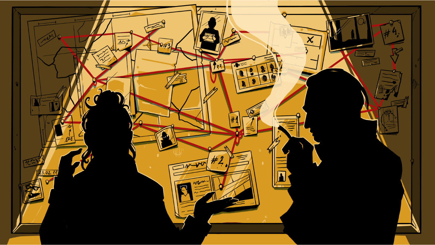 Unsolved Case's hand-illustrated environments are inspired by noir novels.